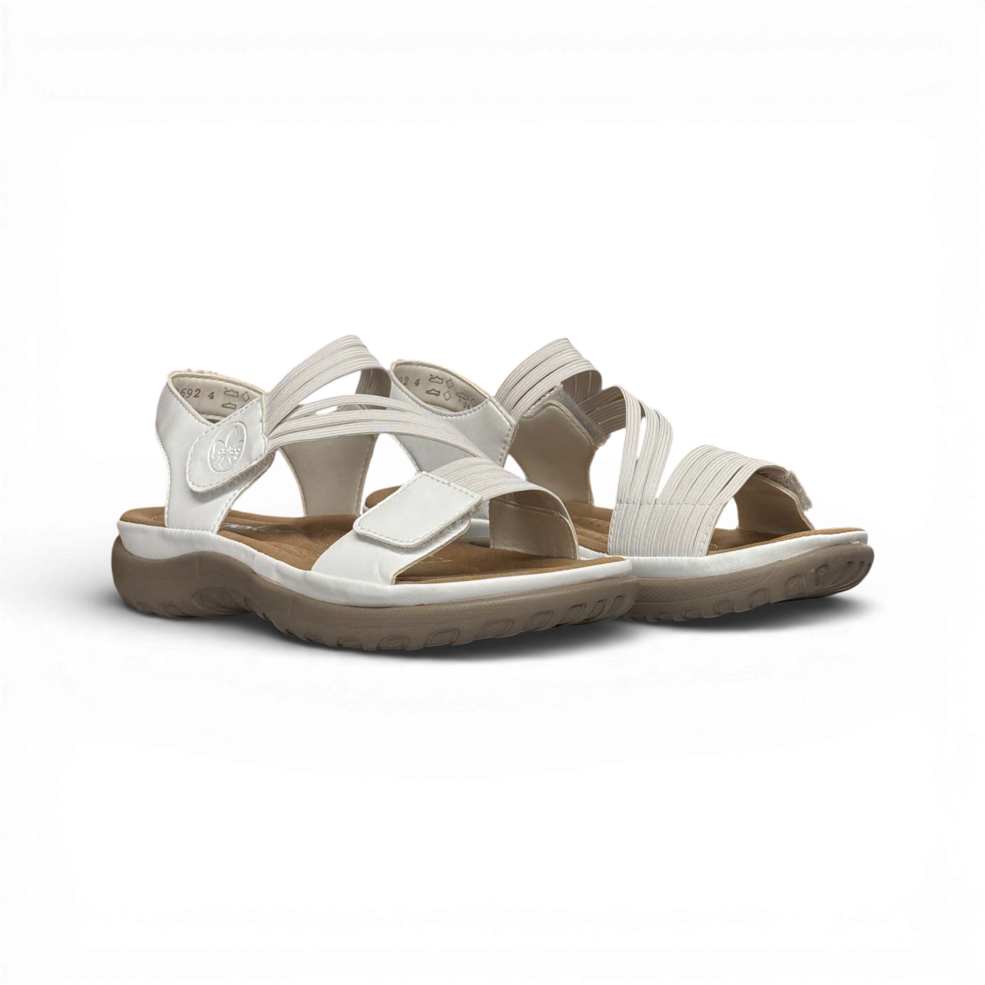 The Rieker 64870-81 will be an easy to wear and stylish companion in your life this season. Two velcro straps make it open and adjust to any foot size while the Z pattern gives it a touch of style. When you place your foot in the sandal you will feel the soft, anti-stress sole combined with a rubber bottom that makes it both comfortable and functional.