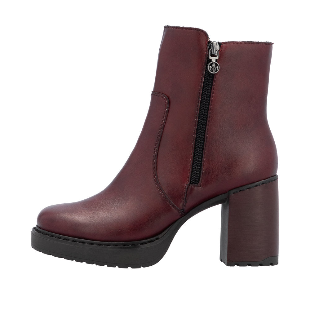 The distinctive Y4155-35 leather ankle boots from Rieker bring a stylish and timeless addition to your wardrobe. The dark wine upper is attached with a decorative zipper on one side and a functional zipper located on the inside of the shoe that makes it easier to put on. Thanks to the wider heel, you will get a comfortable and safer step throughout the day. The soft insole and lining give the shoes maximum comfort and warmth, ideal for the colder season.