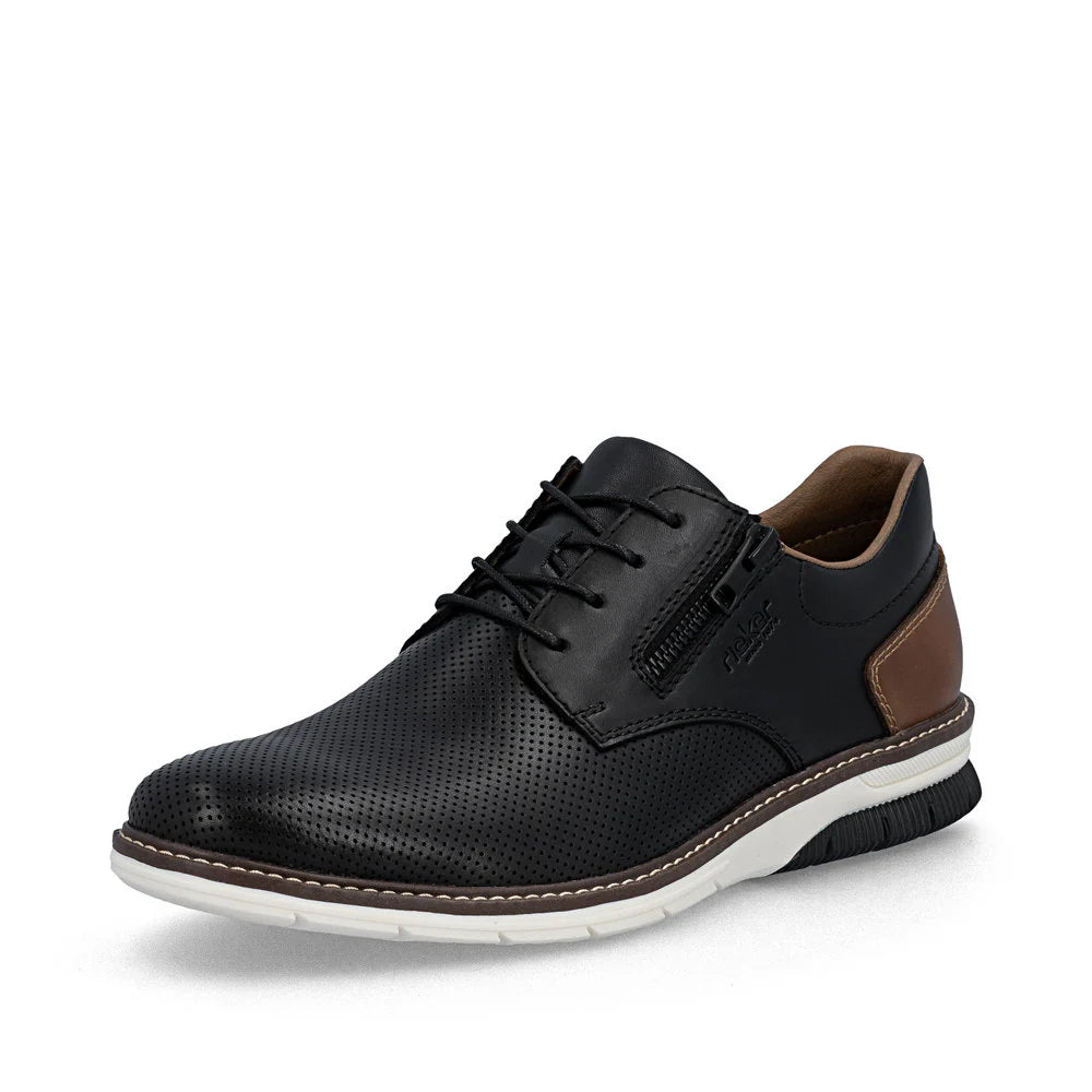 Attention fashion lovers: these black and brown Rieker lace-up shoes are made of smooth leather and offer real comfort for your feet. In addition to the lacing, this shoe is equipped with a zipper that provides easy on and off. The grippy sole gives good traction at every step. In addition, the cover sole is extra soft. The comfort width adds a feel-good factor and offers more space in the shoe.